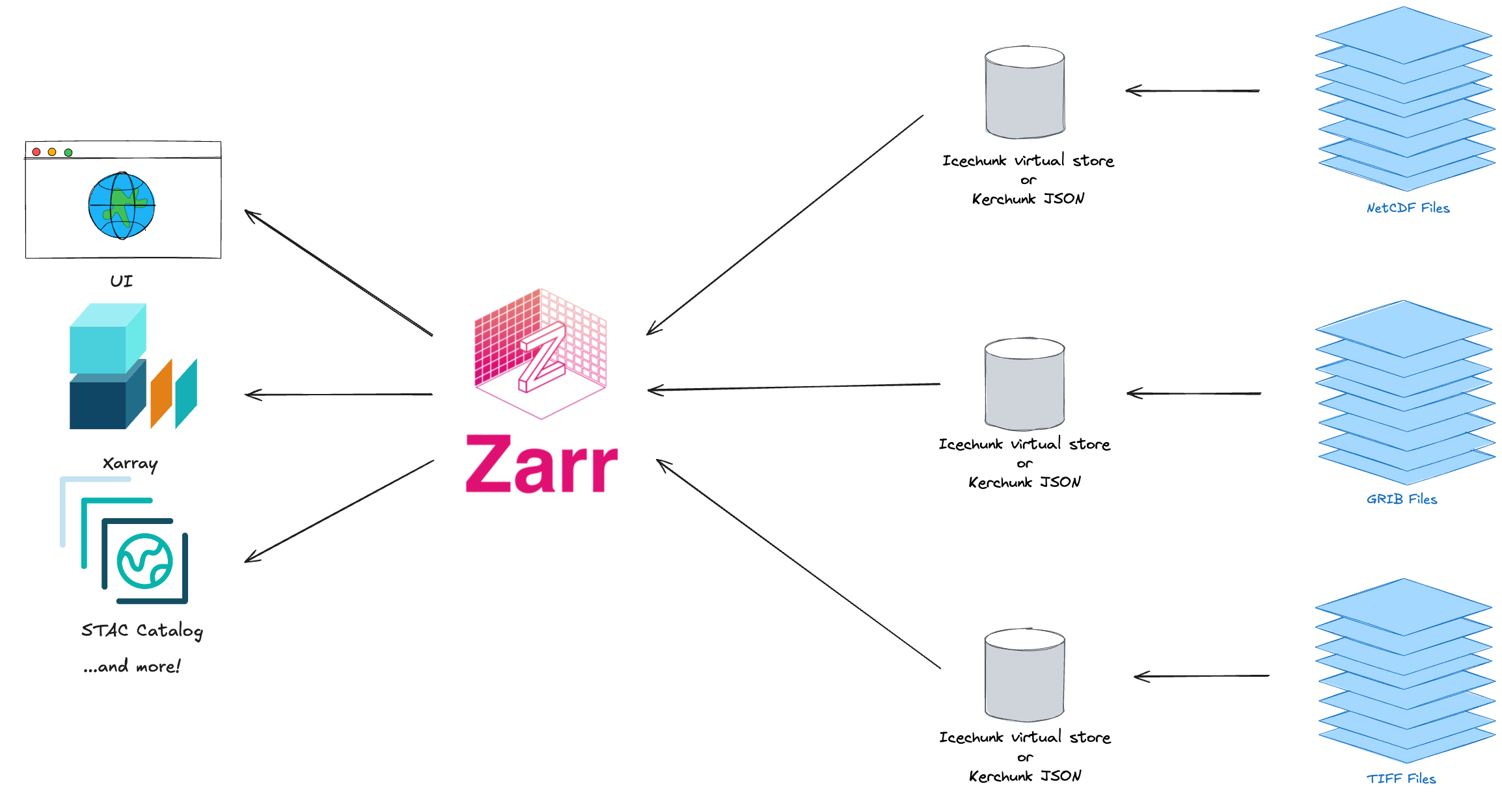 | Zarr, Kerchunk, Icechunk | (Less) widely adopted, especially in specific communities | ESDIS and OGC standards in development |